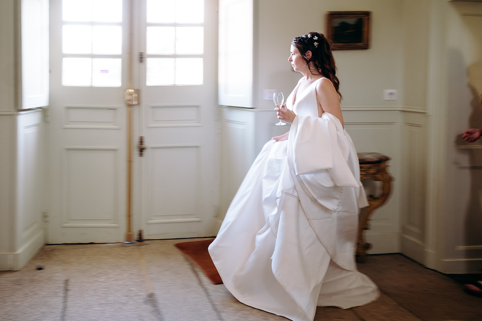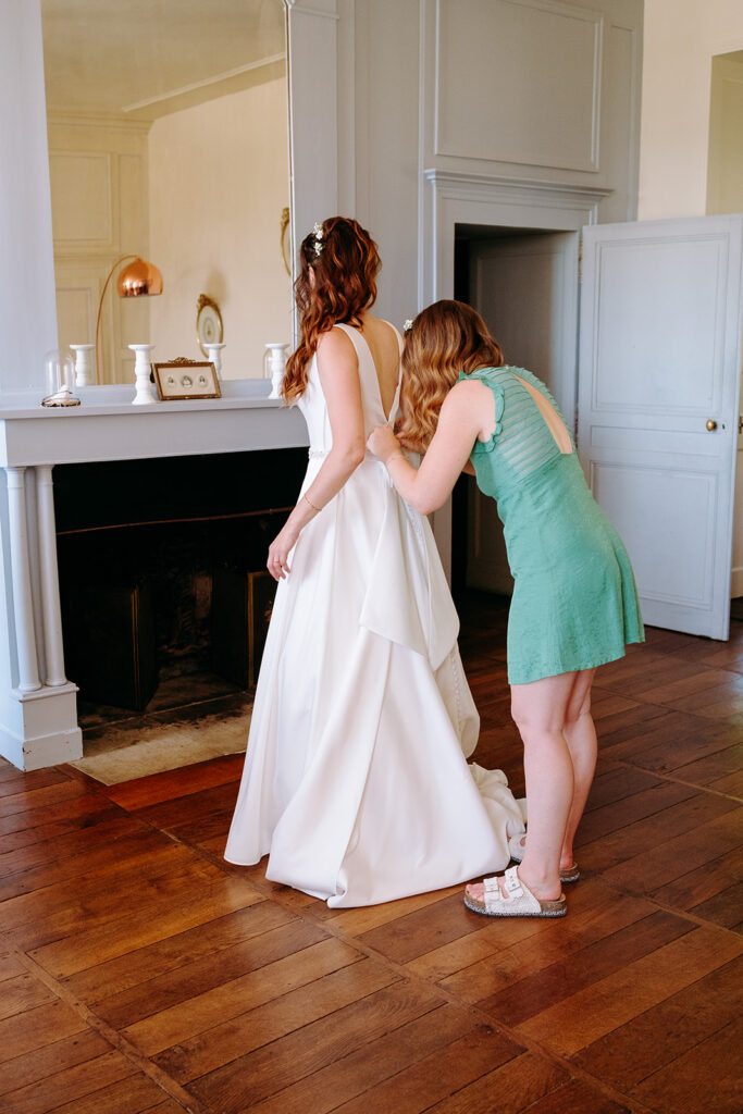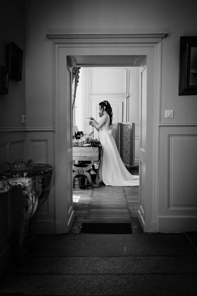 J’aime arriver avant que les mariés ne commence à être coiffés ou maquillés, pour débuter mon reportage sur le contexte et le moment paisible du repas du midi ou du petit-déjeuner. Car il ne se passe pas « rien » comme on pourrait le penser. C’est un temps avant la pression du timing, avec le cercle proche amical et familial. Un moment ordinaire précieux avant le début d’une journée extraordinaire.