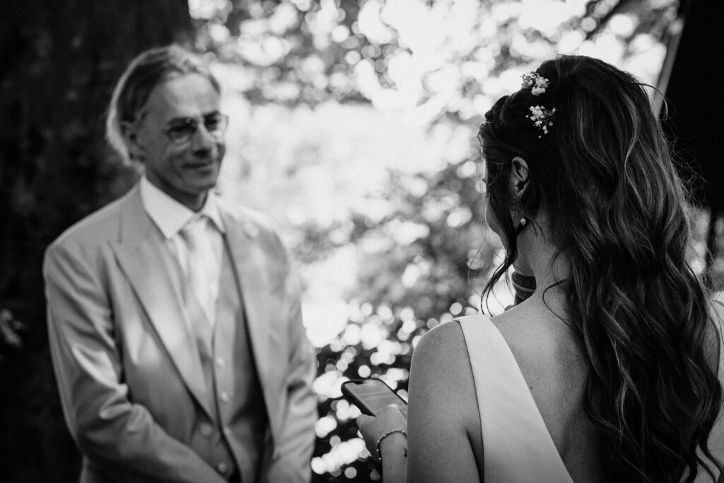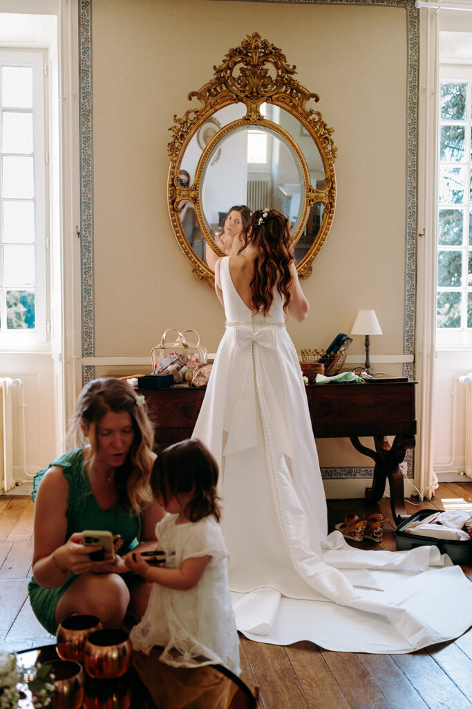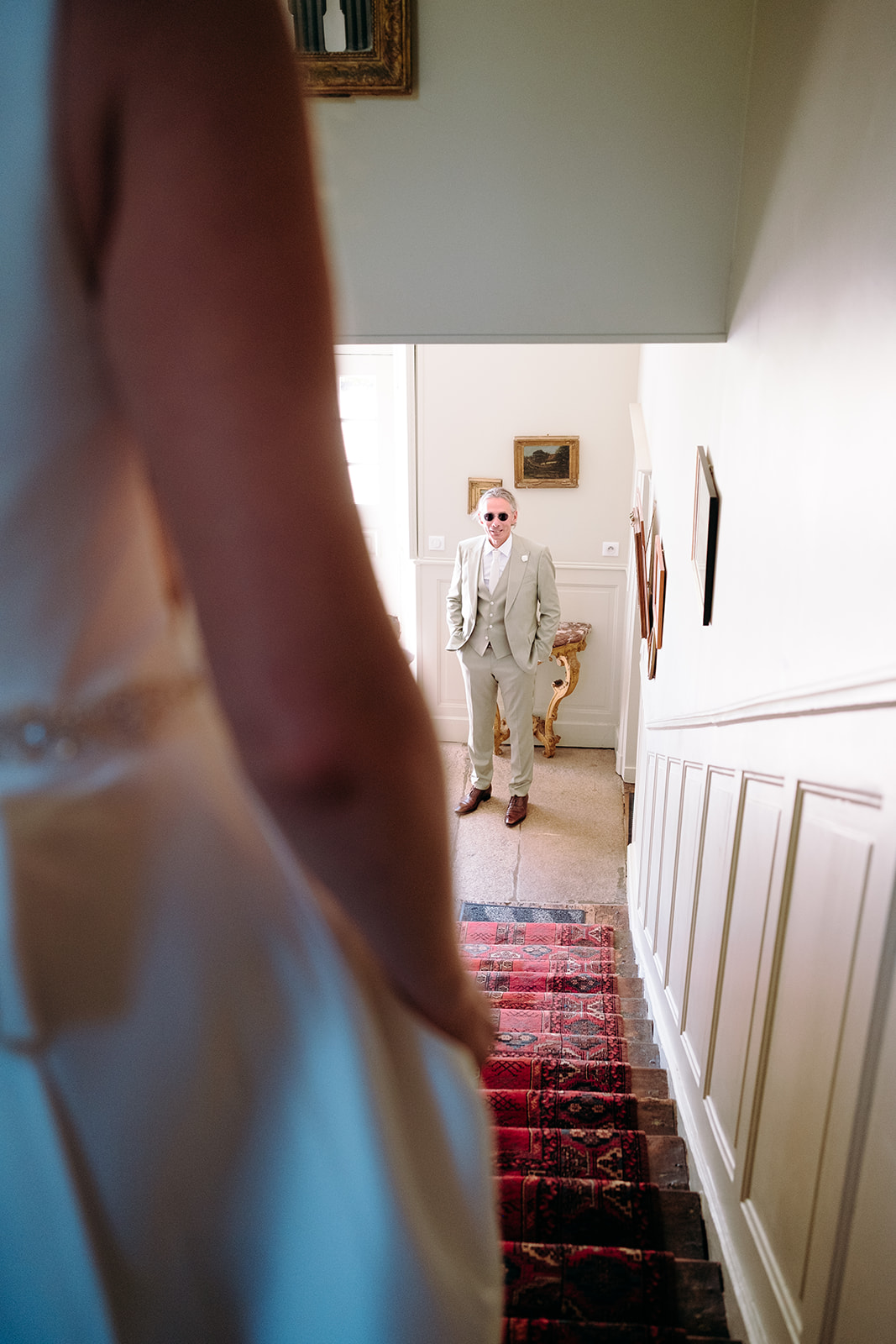 Il est souvent difficile pour les mariés parents de jeunes enfants d’être complètement serein si leur enfant, durant ce temps, n’a pas eu ses rituels ou n’arrive pas à dormir (surtout ce jour-là où les températures étaient excessives). Je comprends parfaitement que l’esprit ne peut pas être totalement connecté à ce moment et c’est ok. J’essaie de vous détendre en douceur, sans forcer, avec mes mots afin de vous amener à obtenir des photos de vous plus décontractées.