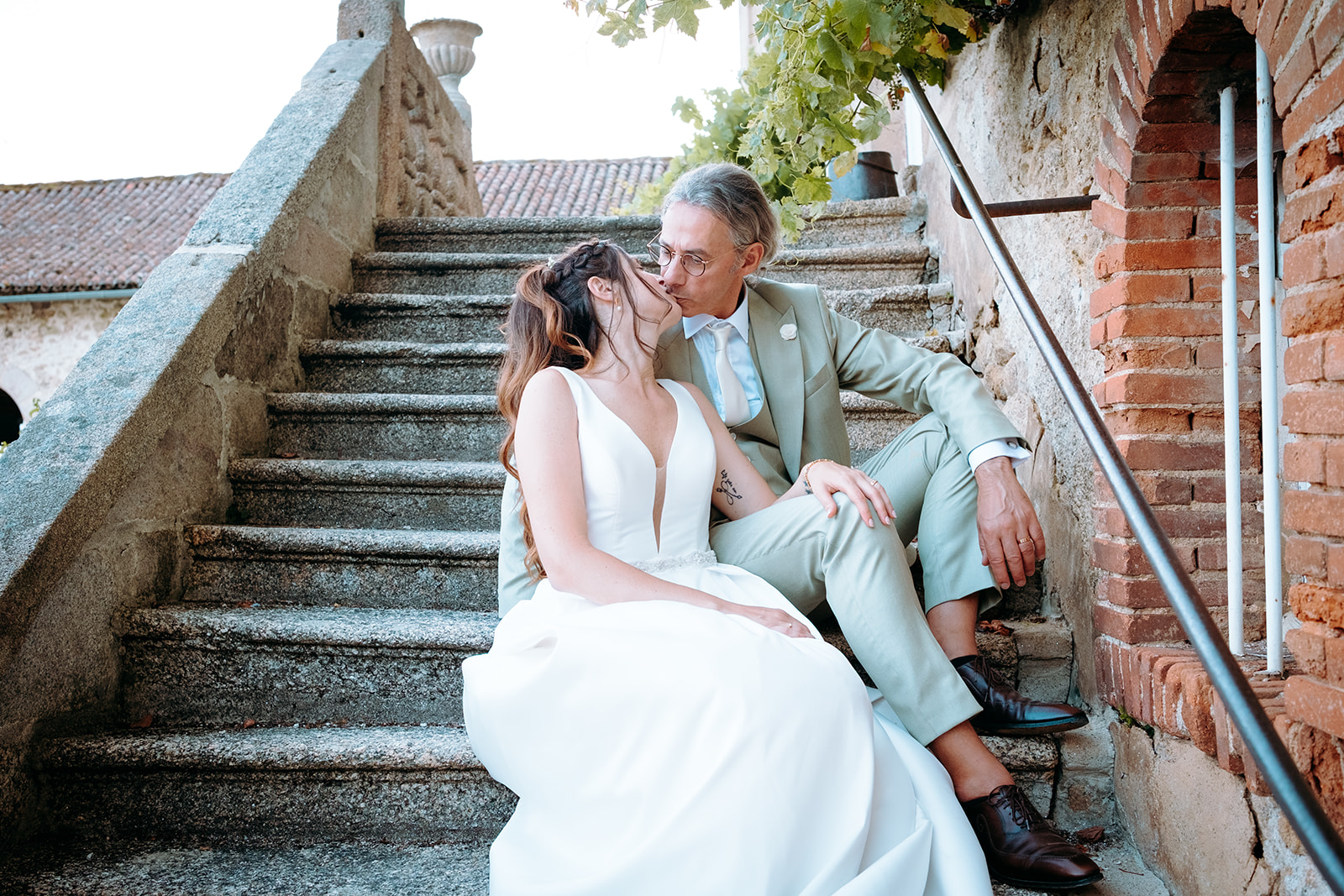 Les photos du couple ont été réalisées entre le vin d’honneur et le repas, au moment où les convives passent à table. Ce temps intermédiaire permet une petite fenêtre de 15 à 20 minutes pour le couple afin de passer un temps ensemble.